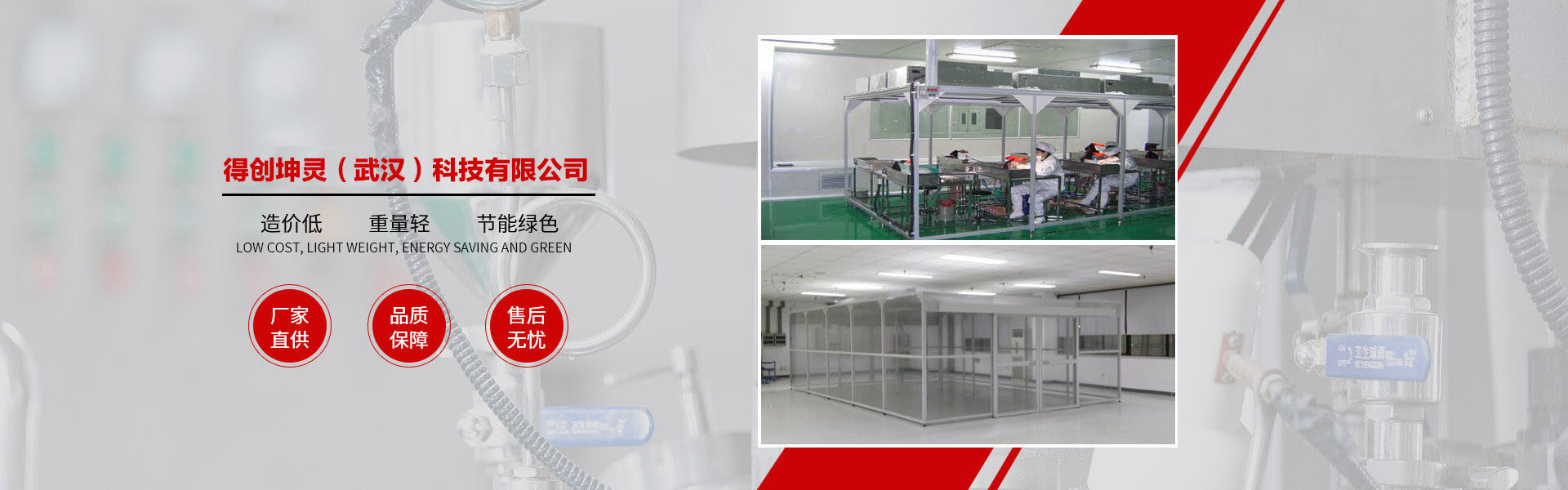 得創(chuàng)坤靈成立于2010年6月,專(zhuān)業(yè)從事食品無(wú)菌車(chē)間、GMP車(chē)間、電子無(wú)塵車(chē)間、食品醫(yī)藥包裝車(chē)間、醫(yī)療器械車(chē)間、潔凈棚、土建工程簡(jiǎn)易房、無(wú)菌實(shí)驗(yàn)室、組合式空調(diào)機(jī)組等項(xiàng)目的設(shè)計(jì)、裝修、施工、調(diào)試、安裝為一體的凈化工程公司,承接十萬(wàn)級(jí)、萬(wàn)級(jí)、千級(jí)、到百級(jí)的凈化車(chē)間、無(wú)塵車(chē)間、無(wú)塵室、潔凈廠(chǎng)房、潔凈室工程的改造與建設(shè)。 作為中國(guó)潔凈室系統(tǒng)工程及設(shè)備制造高品質(zhì)、專(zhuān)業(yè)化的代表,得創(chuàng)秉承“追求完美品質(zhì)、超越客戶(hù)期望”的理念,通過(guò)對(duì)客戶(hù)生產(chǎn)環(huán)境的深入研究及多年的工程實(shí)踐,積累了豐富的潔凈室空調(diào)凈化系統(tǒng)及節(jié)能優(yōu)化設(shè)計(jì)、項(xiàng)目管理及施工經(jīng)驗(yàn),綜合實(shí)力始終處于業(yè)界領(lǐng)先地位。 公司資質(zhì)齊全,包括裝飾裝修工程二級(jí)、機(jī)電安裝二級(jí)、電子與智能化二級(jí)、消防工程二級(jí)、環(huán)保工程二級(jí);擁有多名高級(jí)工程師及暖通設(shè)計(jì)工程師,有著醫(yī)藥凈化工程設(shè)計(jì)、食品無(wú)菌食設(shè)計(jì)、電子無(wú)塵車(chē)間設(shè)計(jì)經(jīng)驗(yàn),長(zhǎng)年與設(shè)計(jì)院有著良好的合作和溝通關(guān)系。公司多年專(zhuān)業(yè)從事凈化工程安裝業(yè)務(wù),擁有數(shù)次在全國(guó)各地有著豐富安裝經(jīng)驗(yàn)的安裝工程隊(duì)伍,在大型管道及彩板安裝方面有著豐富的安裝經(jīng)驗(yàn)和先進(jìn)的現(xiàn)場(chǎng)管理體系。 公司產(chǎn)品廣泛服務(wù)于電子、光電、微電子、光纖光纜、精密機(jī)械、生物制藥、食品飲料、航空航天等眾多領(lǐng)域。我們始終以技術(shù)為中心、以創(chuàng)新為動(dòng)力、以服務(wù)為己任。以一流的產(chǎn)品質(zhì)量,良好的售后服務(wù),參與到激烈的市場(chǎng)競(jìng)爭(zhēng)中來(lái),贏得客戶(hù)的支持與信賴(lài)。 隨著公司的持續(xù)發(fā)展、隊(duì)伍的日益壯大,公司將一如既往地堅(jiān)持"以客戶(hù)為中心"的理念,在激烈的市場(chǎng)競(jìng)爭(zhēng)中迎頭奮進(jìn),以"創(chuàng)一流品牌、建一流企業(yè)"的品牌拓展戰(zhàn)略,面對(duì)機(jī)遇與挑戰(zhàn),開(kāi)創(chuàng)一片嶄新的天地! 品質(zhì)成就夢(mèng)想、秉承口碑相傳、得創(chuàng)凈化……